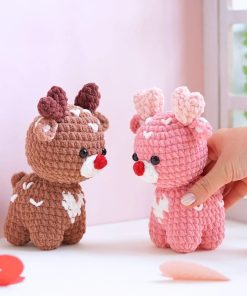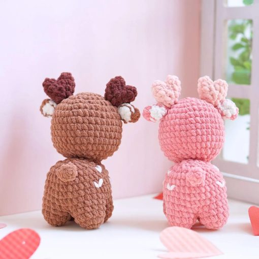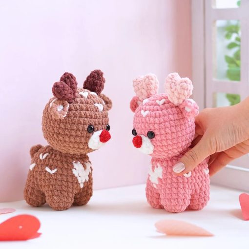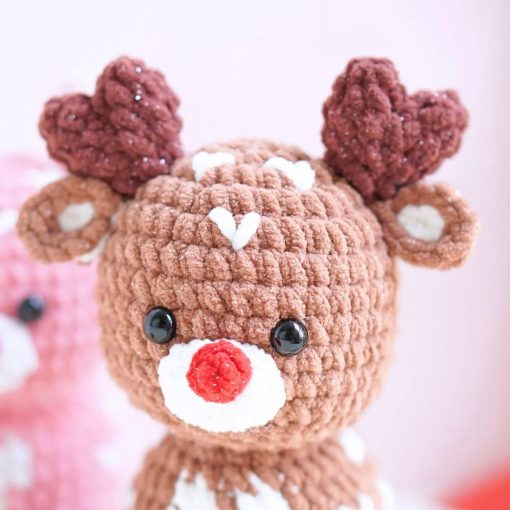 Meet the Romantic Reindeer, a pair of cozy companions in soft brown and pastel pink tones. With heart details on their bodies and antlers, they are perfect for decor .
